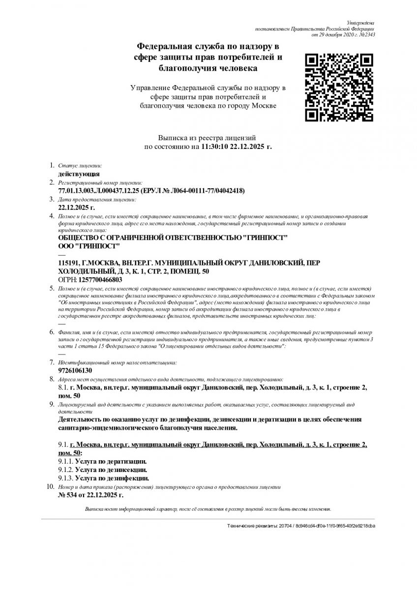 Официальный сайт Общества с ограниченной ответственностью «ГРИНПОСТ» 117105, 115191, г. Москва, ВН.ТЕР.Г. Муниципальный округ Даниловский, пер Холодильный, д. 3 к. 1 стр. 2, помещ. 50 (ОГРН 1257700466803)